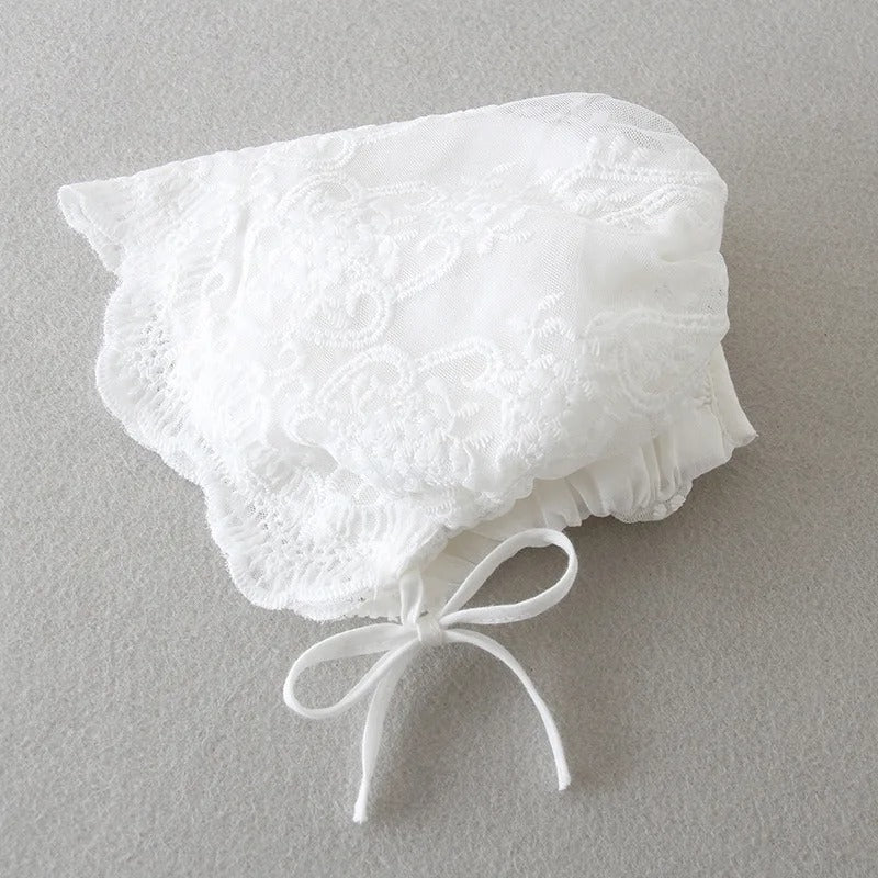 El vestido Gala es una vestido de falda larga estilo español de encaje, detalles en el pecho, manchas y cuello. Incluye gorrito